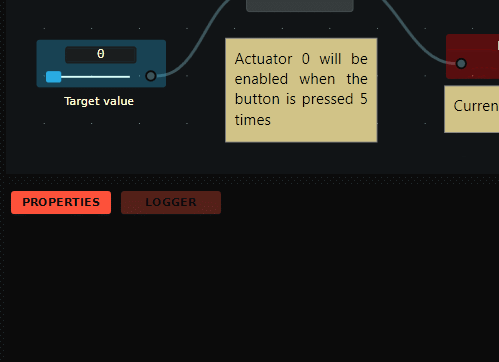 Since we want the counter to turn on upon reaching 5 (setting PV to 5), we must set the Numerical source value to 5. Before setting this value, it's important to set first the minimum and maximum values allowed by this node. Left-click on the Numerical node to select it, next Left-click on the Properties Panel and insert 10 as the MAX limit. Now, when dragging the Numerical slider, values will change between MIN (0) and MAX (10) values. Alternatively, you may set the value directly by left clicking on the node's input field and typing it.