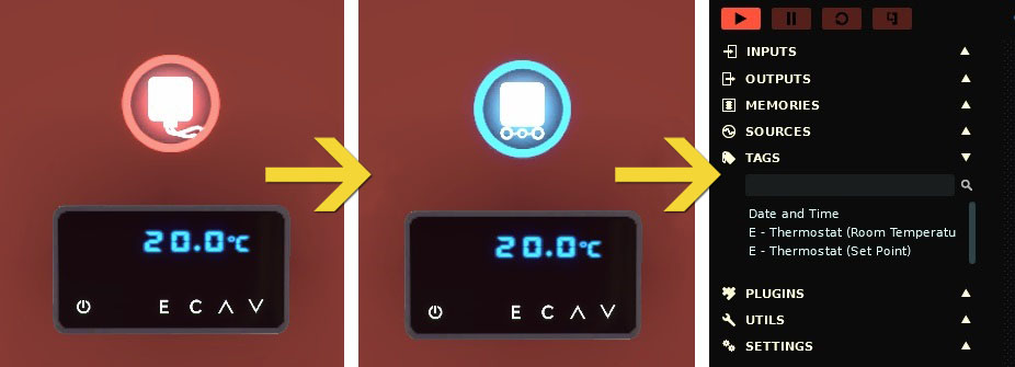 Connect I/O can be used as a SoftPLC to control directly Home I/O. Alternatively, it can be used as an interface with external technologies, allowing Home I/O to be easily connected to PLC, microcontrollers, Modbus, among many others technologies.