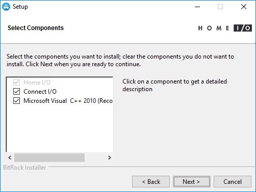 2 - Follow the installer instructions. Microsoft Visual C++ 2010 is required for running Home I/O, and it's recommended that you leave it checked.