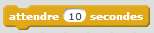 Pour éviter d’éteindre et de rallumer la lumière sans arrêt parce que nous ne sommes pas constamment en mouvement dans la chambre, on ajoute un bloc de temporisation. Ce bloc de temporisation va ajouter un délai permettant d’être sûr que la pièce est vide avant de l’éteindre. Le bloc de temporisation est le suivant : « attendre…secondes » dans la classe « Contrôle » dans lequel on règle le temps (en secondes) de la temporisation.