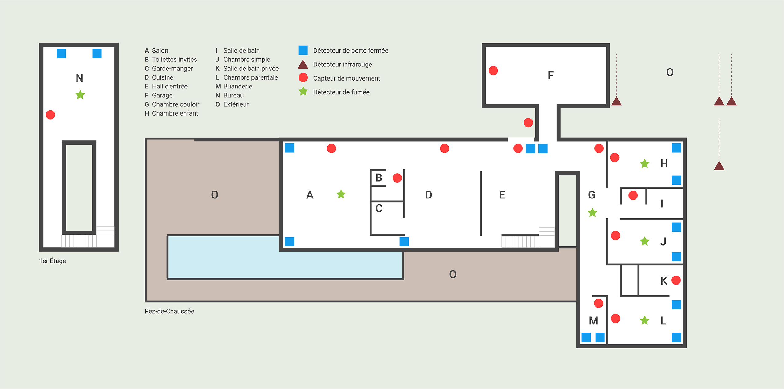 Carte des éléments¶ Carte des éléments Home I/O PDF Télécharger Les cartes suivantes indiquent les éléments disponibles et leur position. Lumières Lumières Interrupteur lumière Store enrouleur et interrupteur haut / bas Radiateur et Thermostat Détecteurs Autres
