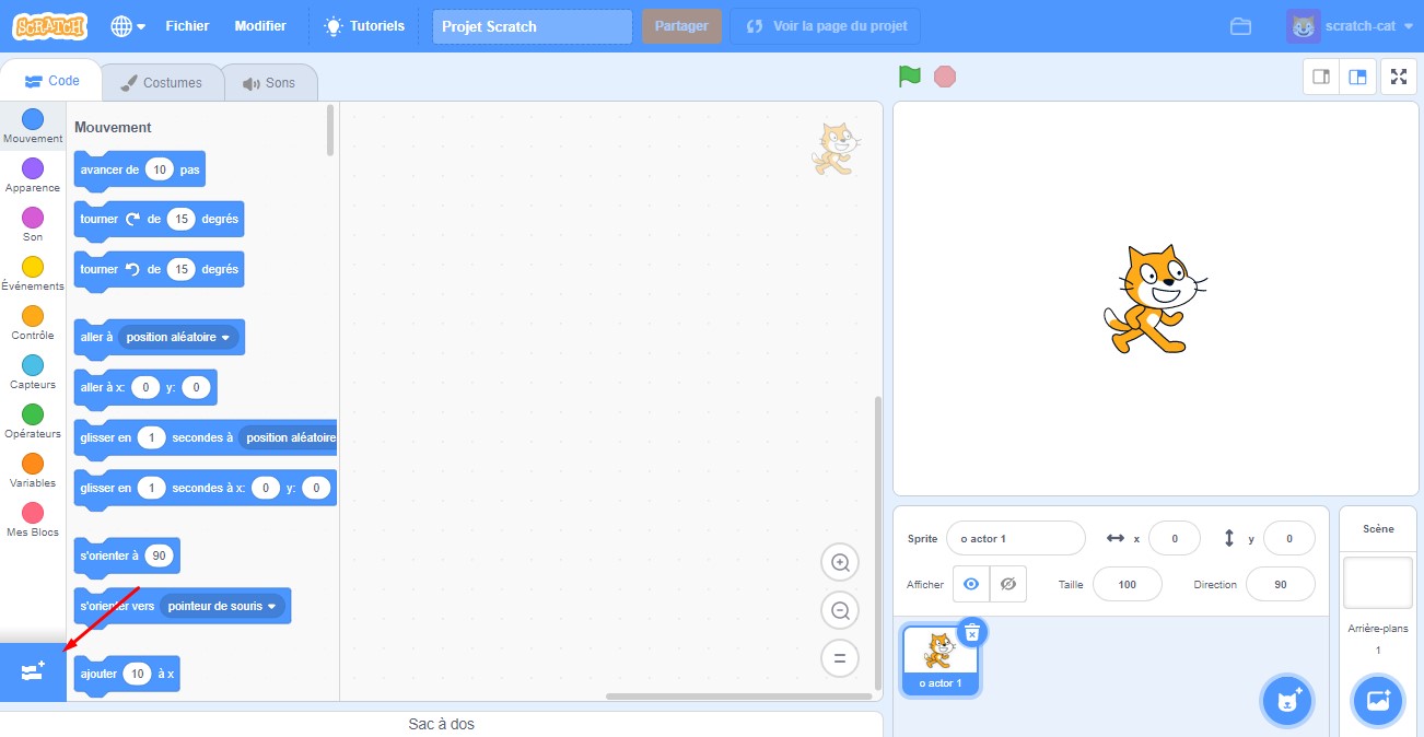 Extensions supplémentaires sont disponibles en plus des extensions de base proposées par Scratch 3 : Home I/O (FR) et Home I/O (EN). Ces 2 extensions permettent respectivement d’échanger avec la version française ou la version anglaise de Home I/O.