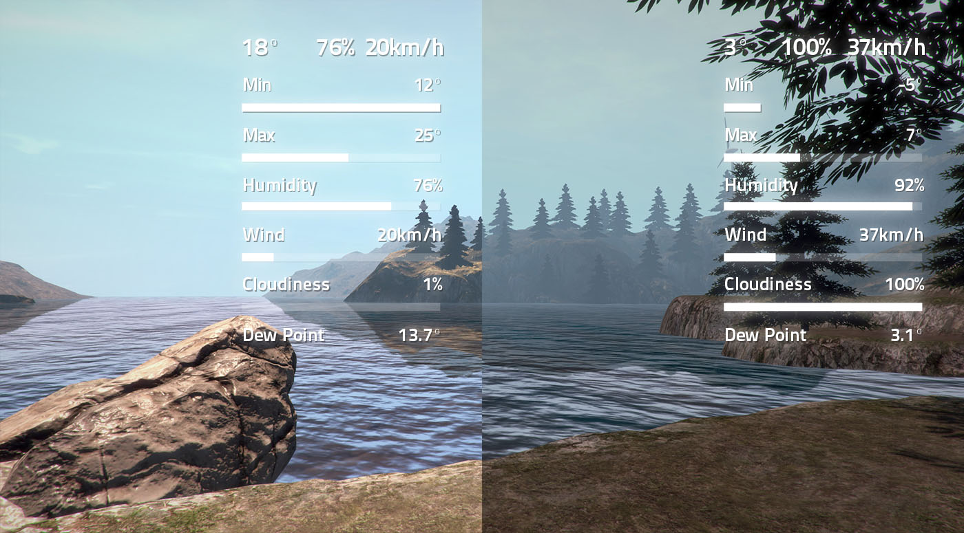 Modifier les conditions météorologiques, l'emplacement, la date, l'heure et d'autres paramètres.